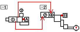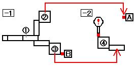矢印は階段・飛び降り可能な場所を通じて移動できるエリアをつないでいます。