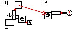 矢印は階段・飛び降り可能な場所を通じて移動できるエリアをつないでいます。